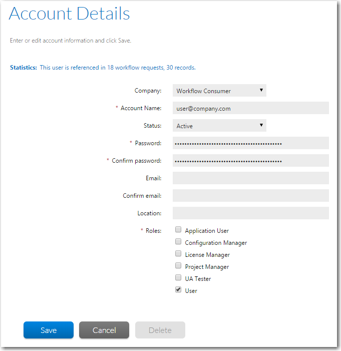 4. View or update the account as required. See Account Details Page for more details.