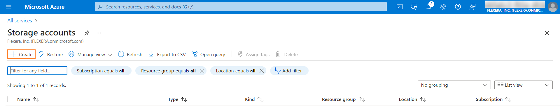 2. From the list of available Azure services, choose Storage accounts. The Storage accounts page appears.