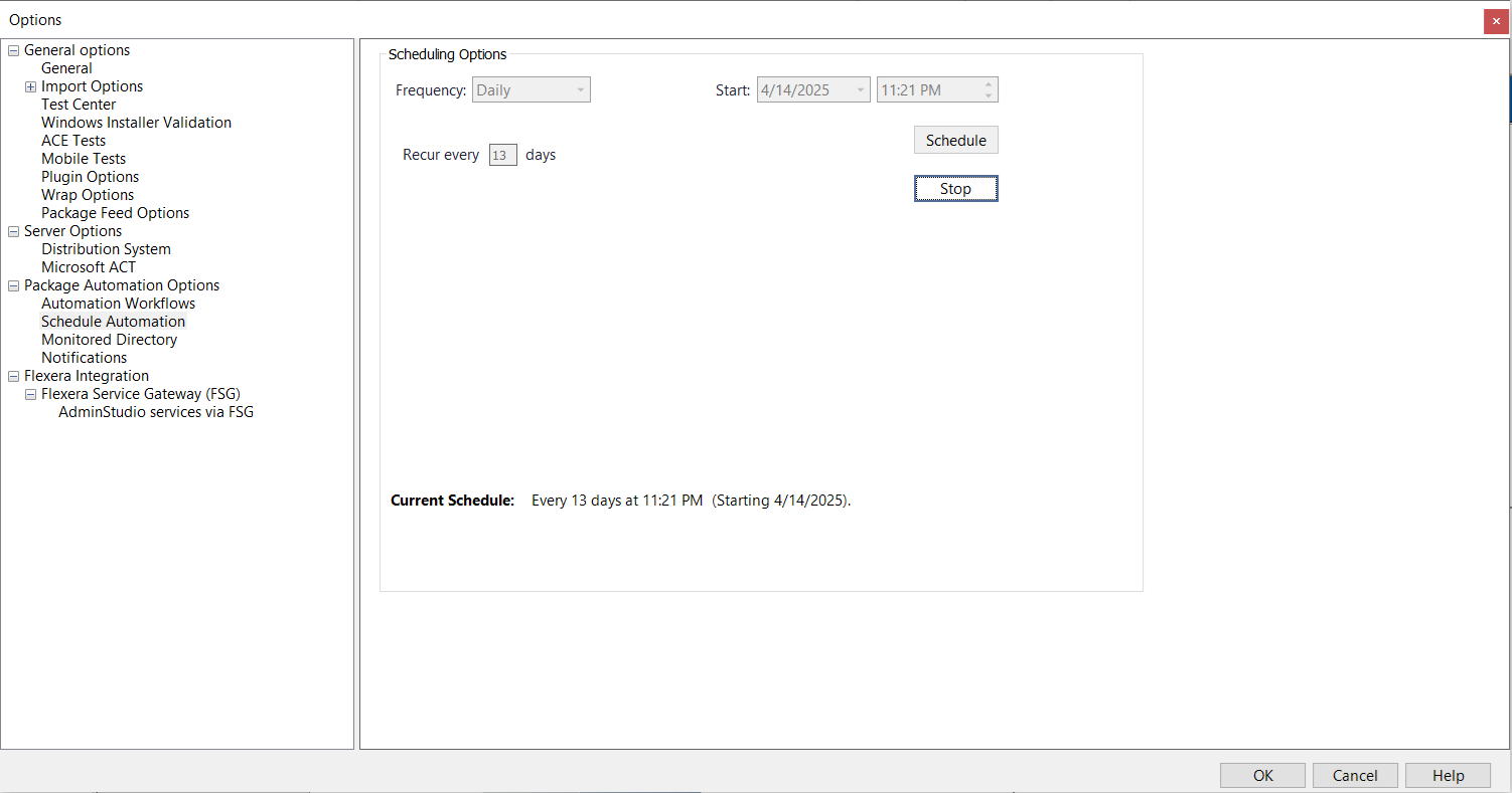 2. Under Package Automation Options, select Schedule Automation. The Scheduling Options tab opens.